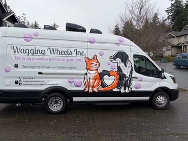 Hi everybody, my name is Angela and I am the proud owner of Wagging Wheels Inc. We are a mobile pet grooming service in the Cowichan Valley Region.